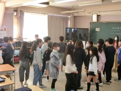 今日の朝の児童集会は、3年生が学級閉鎖ということもあり、体育館には集まらず教室で「もうじゅうがりゲーム」を行いました。集会委員が校内放送で掛け声を出し、クラス単位でのゲームとなりましたが、どのクラスも放送をしっかりと聞き、ルールに従って活動を進めていました。