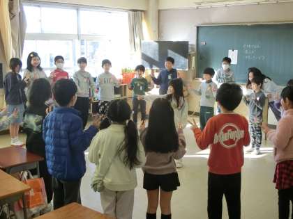 今日の朝は、たてわり班活動がありました。6年生が活動をリードし、決まりを守って楽しく活動しています。
