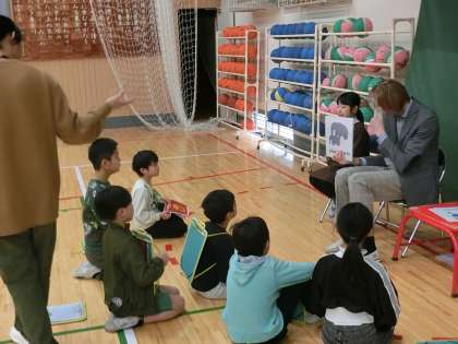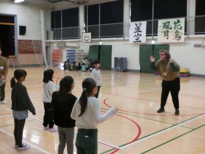 今日は、2・3年生を対象としたイングリッシュキャラバンを各クラスで1時間ずつ行いました。「外国の遊びを体験しよう」をテーマに、子どもたちが様々な活動を楽しむ姿を見ることができました。