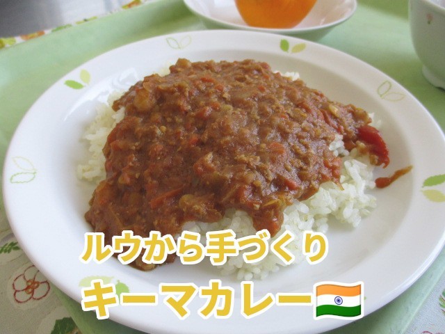 【献立】*キーマカレー *コールスローサラダ *くだもの(はるみ) *牛乳