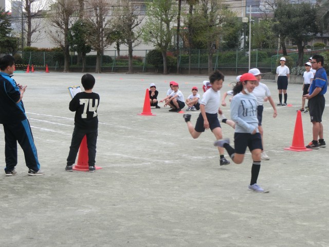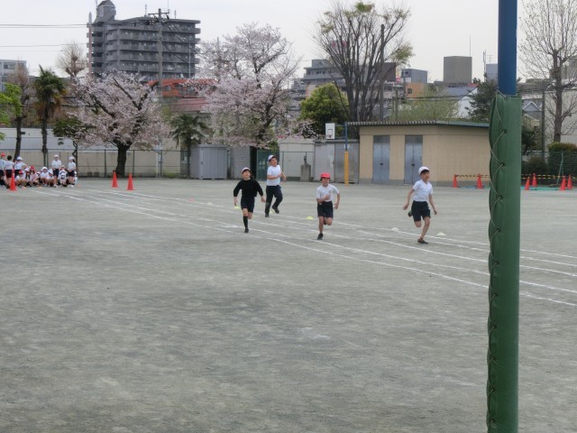 校庭では、5年生が50メートル走のタイムを計っていました。本年度の体育発表会に向けて、一生懸命走る姿が見られました。