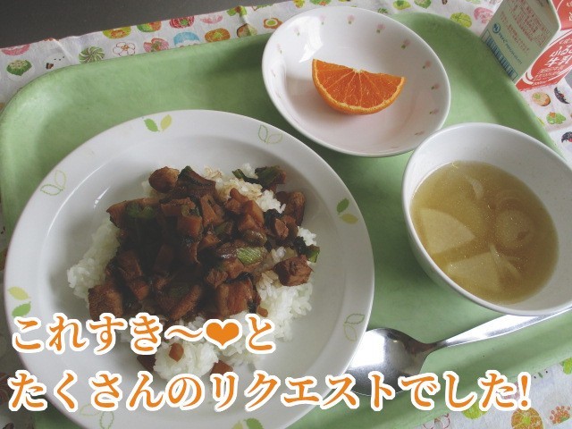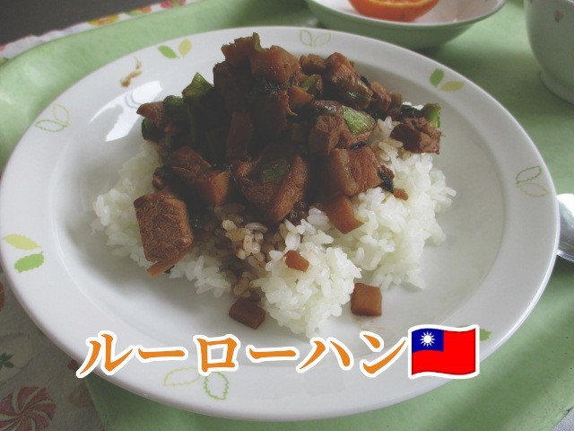 🌍献立🌍 ルーローハン・ルォボータン・くだもの(オレンジ)・牛乳