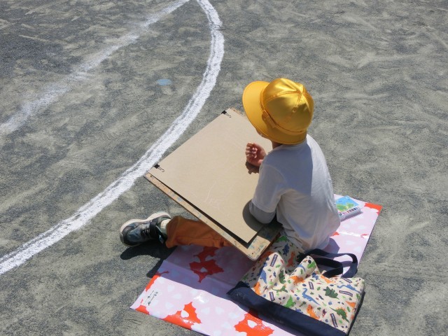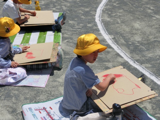 今日は、1年生が消防車の写生を行いました。外はとても良い天気で、少々暑くなりましたが、子どもたちは一生懸命車と向き合いながら、集中して絵を描いていました。1年生のみなさん、とてもよく頑張りました!