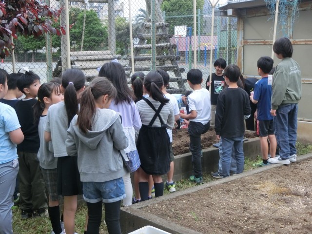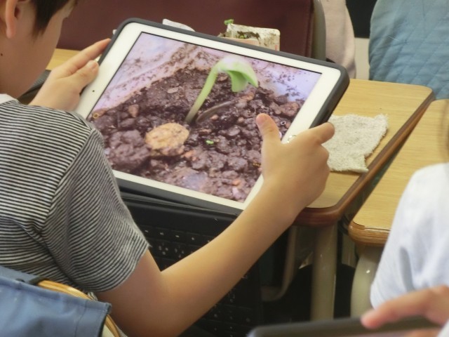 3年生が理科の学習でホウセンカとひまわりを育てています。成長の様子を確認したり、ロイロノートにまとめたりし、今日はちょうど畑に芽を移し替えていました。はたしてどこまで成長するのでしょうか。とても楽しみですね!
