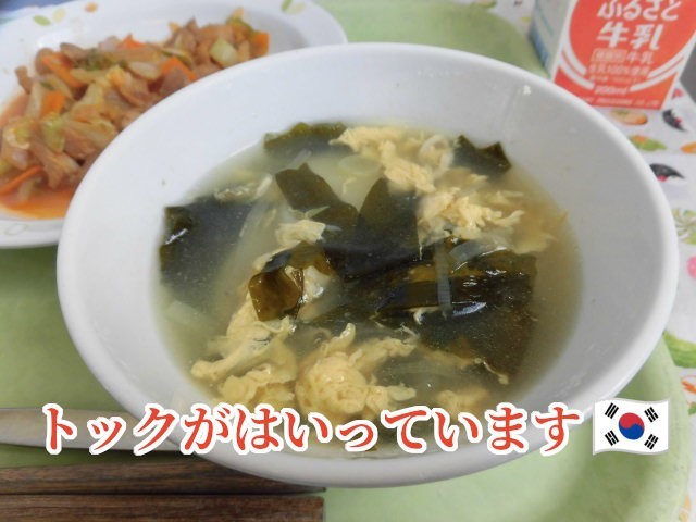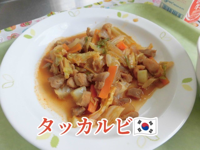 🇰🇷献立🇰🇷 ごはん・タッカルビ・トックスープ・りんごゼリー・牛乳