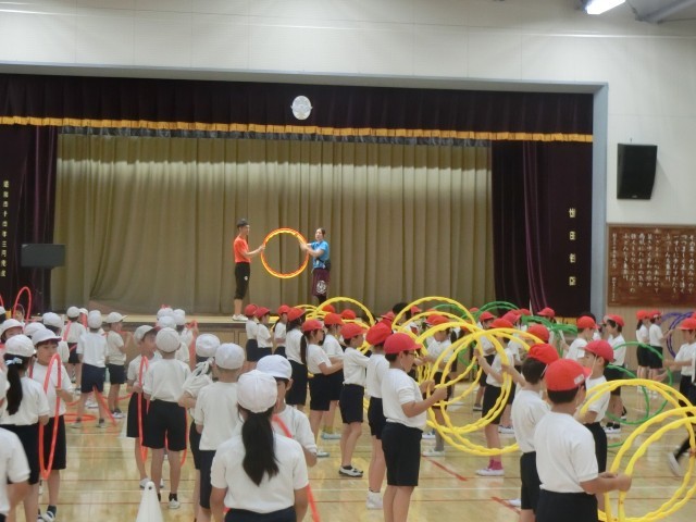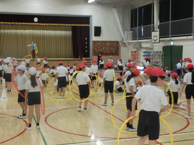 学校の廊下に掲示されていました。来週の土曜日の体育発表会に向けて、どの学年も毎日練習を重ねています。今日の午後は、3・4年生の表現運動の練習がありました。基本的な動きをフープを使いながら練習していました。どのような形に仕上がるのか、今からとても楽しみです。