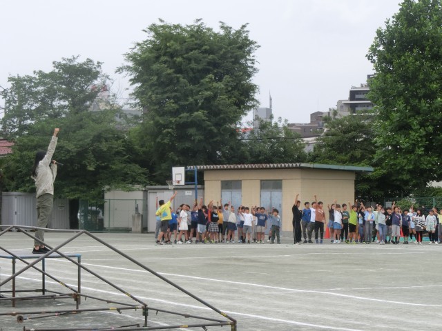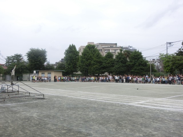 今日の朝は音楽朝会です。明日はいよいよ体育発表会なので、発表会で全員で歌う歌の練習をしました。どの学年も、朝からよく声が出ています。今日は暑すぎず、運動するにはちょうど良い気候です。明日もこのぐらいの天気で開催できればいいなと願っています。