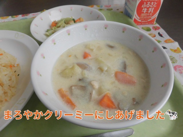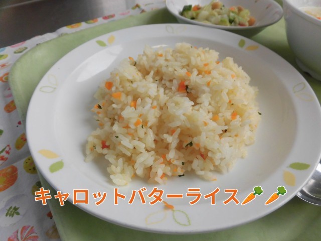 🥕献立🥕 キャロットバターライス・クリームシチュー・ひよこ豆のサラダ・牛乳