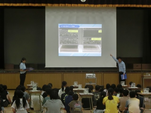 今日の1.2時間目は、4年生が「水道キャラバン」の学習をしていました。本校では、毎年キャラバン隊を呼び、東京都の水道についての学習をしています。簡単な実験を交えながら、水に関する理解を深めていました。