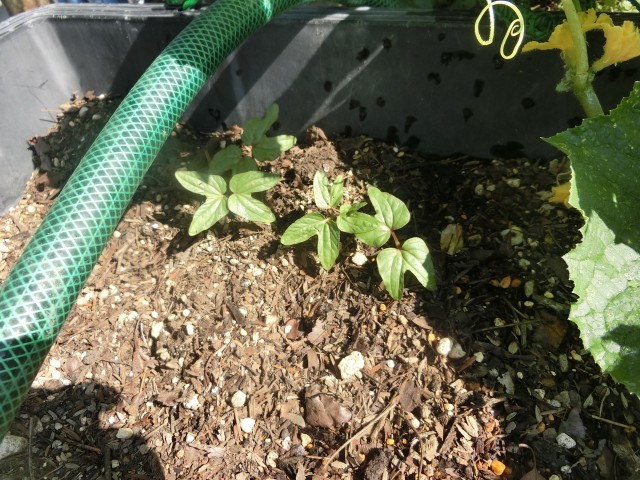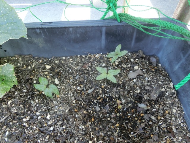 先日種を植えた「けんちゃんの朝顔」が早くも発芽しました。隣のヘチマに負けまいと、ぐんぐんと成長しだしています。夏を迎えるころには、立派に育つと思います。