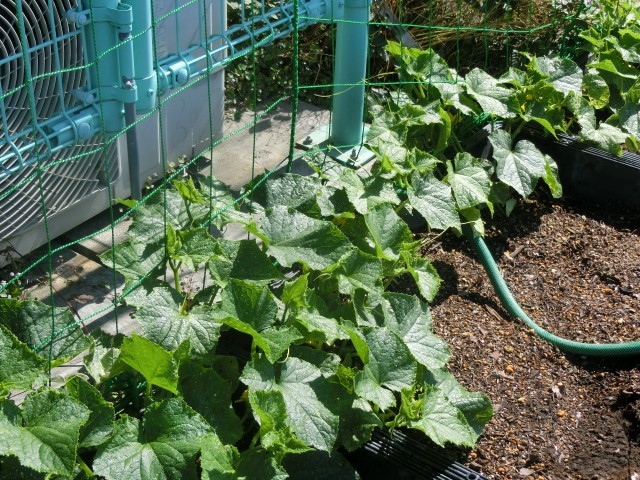 プランターに植えたヘチマやキュウリの苗が、この一週間でたくさんの葉をつけ、花を咲かせて成長しています。あっという間に人間の身長を超え、3階部分まで到達し、身をつけます。今年も、ぐんぐんと成長してほしいと願っています。