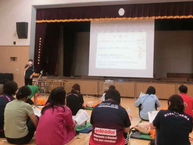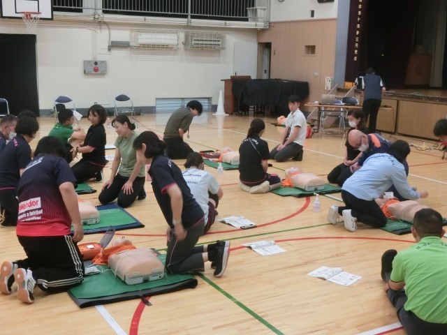 来週からのプール実施に向けて、本日の午後は先生方全員で救急救命講習を行いました。毎年1回、学校ではプール実施の前に心肺蘇生法やAEDの使い方などを学びます。子どもたちの安全な水泳学習に向けて、教員も念入りに準備を重ねています。