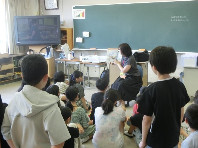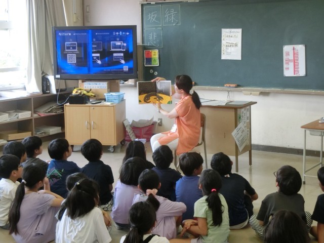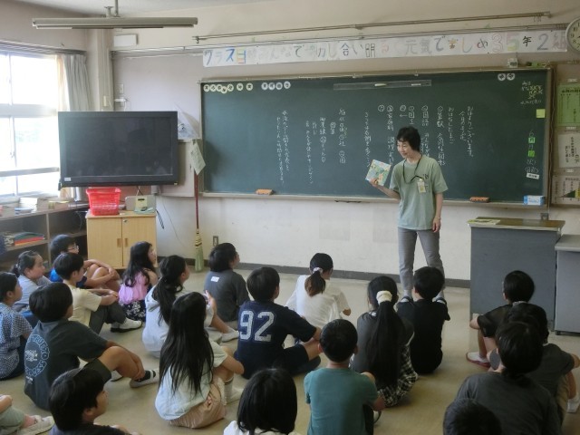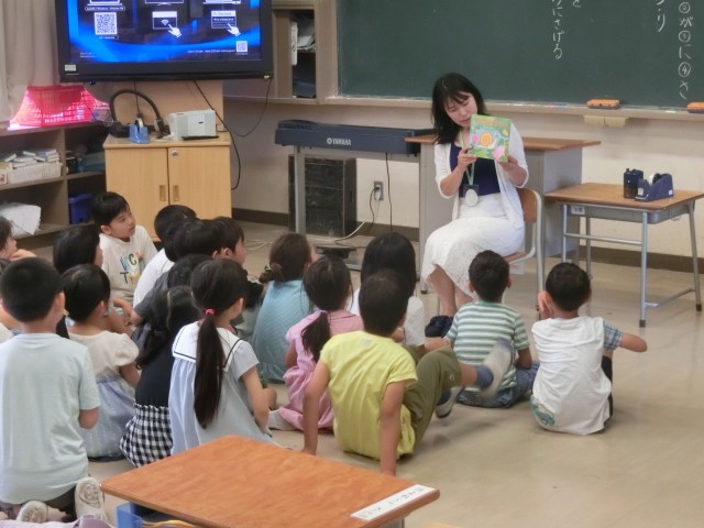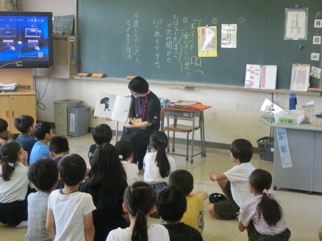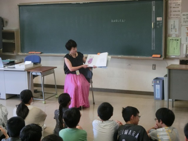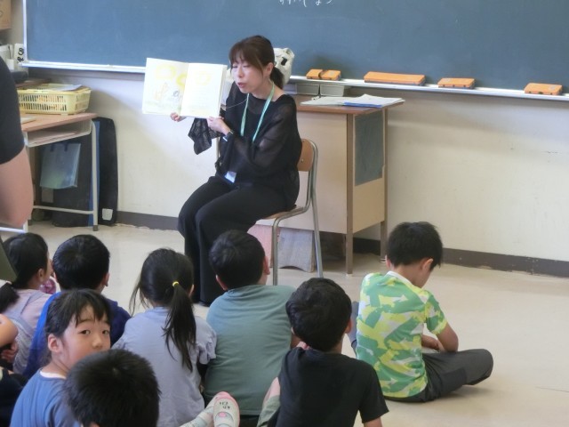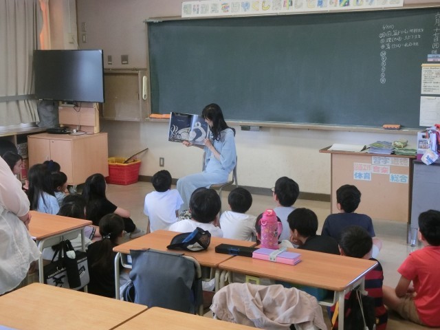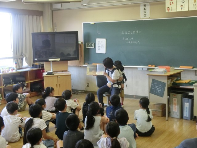 今日の朝は、おはなしたまごの時間でした。今回から、新しく1年生の保護者の方もおはなしたまごの一員として加わり、子どもたちに本の読み聞かせをしてくださっています。