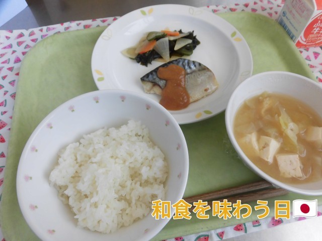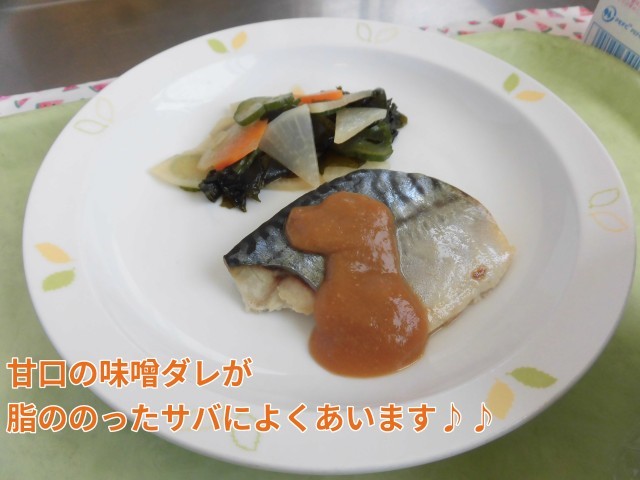 🇯🇵献立🇯🇵 ごはん・さばのみそだれかけ・和風サラダ・キャベツのみそ汁・牛乳