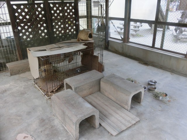 本校で飼育しているうさぎは、暑さに負けず元気に過ごしています。どの風向きでも過ごせるように日陰の場所を作り、安心して過ごせる場所を確保したり、保冷剤を常に置いて涼しく過ごせる場所を確保したりするなどし、暑さ対策をしています。うさぎたちも快適に過ごせる場所を自分たちで選びながら、のびのびと過ごしています。