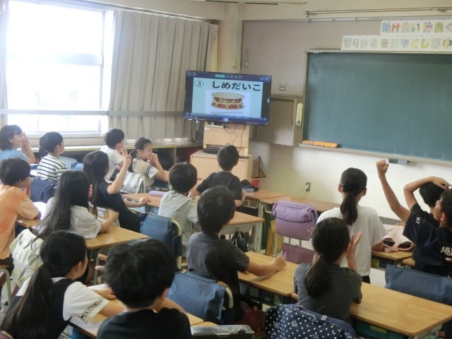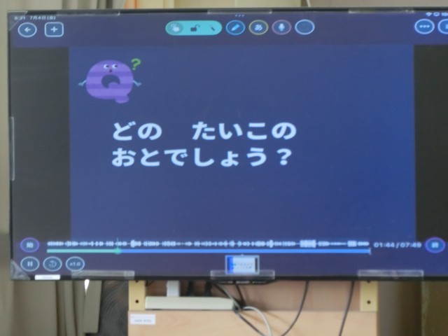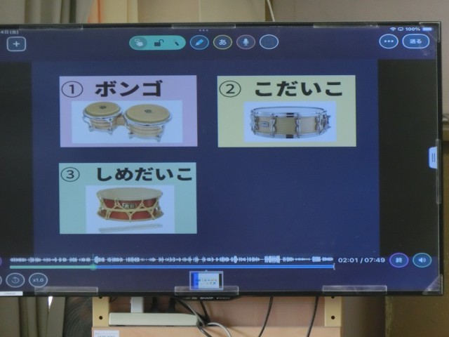 今日の朝は音楽朝会でした。音楽専科の先生が動画を作成し、音あてクイズを行いました。正解がでるたびに、盛り上がっているクラスもありました。