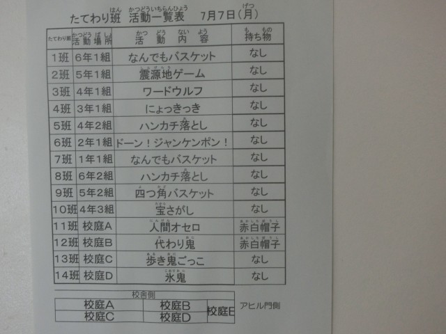 今日の朝は、たてわり班遊びがありました。班で初めて遊びもあり、6年生を中心にルールを確認しながら、短い時間で楽しく交流ができていました。