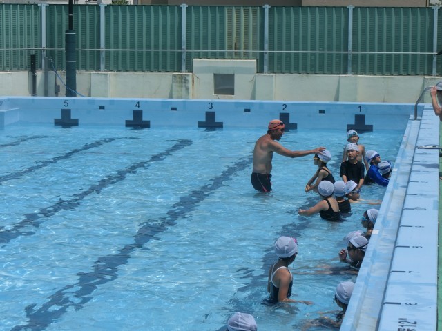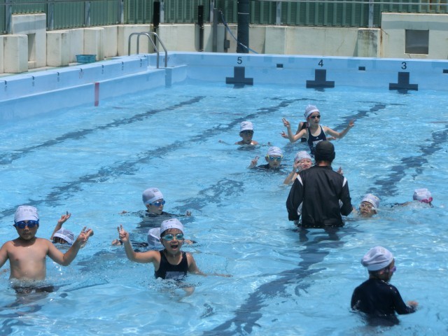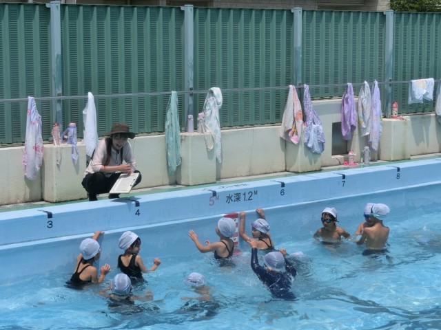今日は、1年生の水泳指導がありました。だいぶプールに慣れてきた1年生。検定で合格するために、どの子たちも一生懸命頑張って取り組んでいました。
