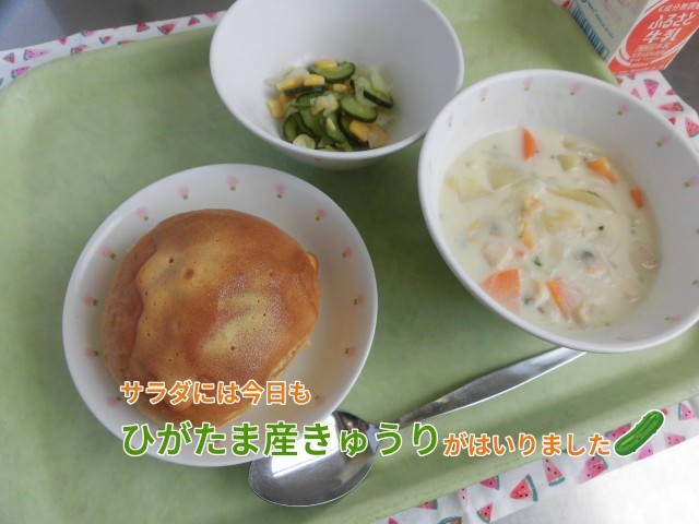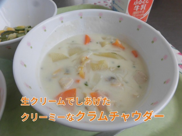 🥒献立🥒 ビスキュイパン・クラムチャウダー・コーンサラダ・牛乳