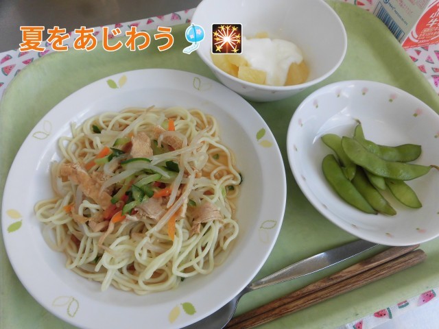 🍍献立🍍 冷やし中華・枝豆・パインヨーグルト・牛乳