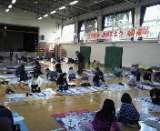 体育館では、地域の方にもご協力いただき書き初め会をしています。真剣な表情で書いて...