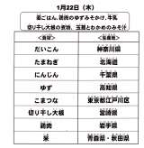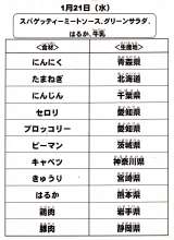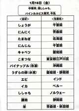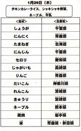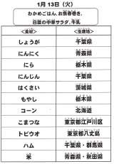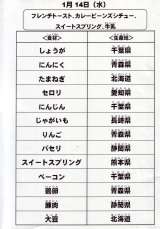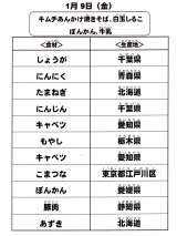 1月9日(金) 本日の主な食材の産地は以下の通りです。