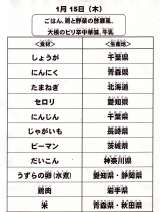 本日の給食で使用した主な食材の産地は以下の通りです。 今日から金曜日までは、学...