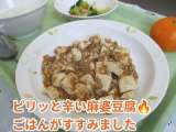 【献立】 ごはん 麻婆豆腐 ブロッコリーの中華あえ くだもの(みかん) 牛乳