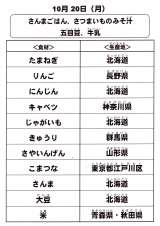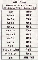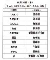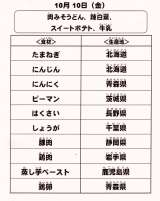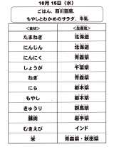 本日の給食で使用した主な食材の産地は以下の通りです。