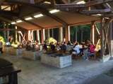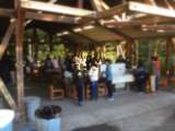 なかのビレジに到着しました。 山から吹き降ろす風は冷たいです。 開室式の前に屋根...