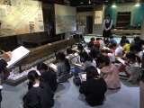 昔の水道の仕組みについて係の方の話や人形劇で学びます。 一生懸命、メモを取ってい...