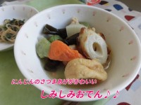 🍠献立🍠 ごはん・ひじきのふりかけ・おでん・ほうれん草のごま和え・牛乳