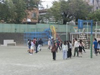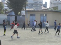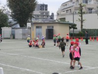 5年生が川場から戻り、全校児童が学校にそろった朝遊びの日です。5年生も、朝から元...