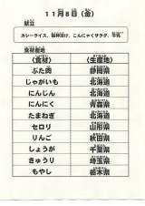 11月8日(金)の献立と食材の産地は以下の通りです。