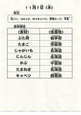 11月7日(木)の献立と食材の産地は以下の通りです。