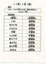 11月12日(火)の献立と食材の産地は以下の通りです。