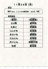 11月28日(木)の献立と食材の産地は以下の通りです。