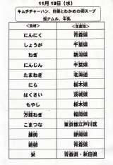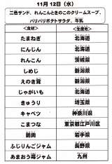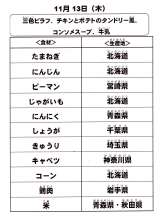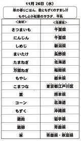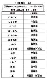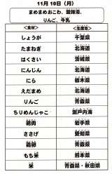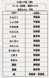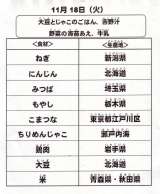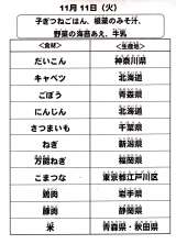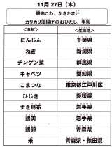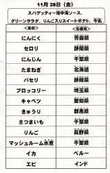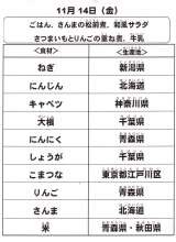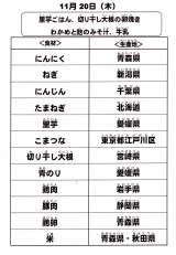 本日の給食で使用した主な食材の産地は以下の通りです。