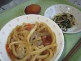 〈献立〉 すき焼きうどん もやしの磯あえ りんごマフィン 牛乳