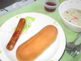<献立> セルフウィンナーサンド クラムチャウダー ぶどうゼリー 牛乳 一年生...