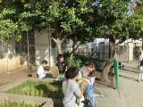 校庭で季節の変化の観察をしていた4年生。夏みかんの木が実を付けてきた様子や、桜の...