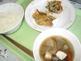 〈献立〉 ごはん(有機米) 鮭のちゃんちゃん焼き 青菜入りおひたし けんちん汁 ...