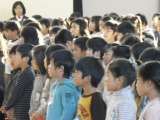 音楽朝会でひがたま合唱団が素敵な歌声を披露