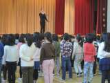 今朝の音楽朝会は、17日の合唱交歓会に出演する合唱団の発表でした。 「スタート...