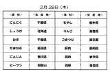 2月25日(月)の給食と26日(火)給食食材の産地について