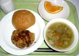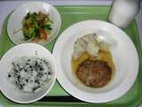 15日(金)の主菜は、鶏ひき肉に刻んだれんこん、たまねぎ、ひじき、にんじんなどの...