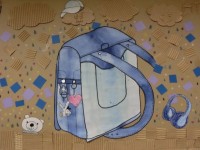1階の職員室前に、6年生が図工の時間に描いたランドセルが飾られています。卒業の日...