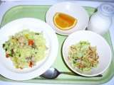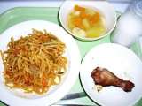 <本日の献立> スパゲッティーナポリタン 牛乳 ローストチキン フルーツポンチ ...