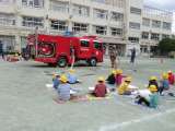 ひがたまの校庭に消防車がやってきました。 1年生がクレヨンを使って、大きな画用紙...