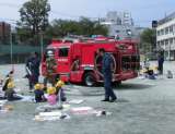 校庭に、消防士さんと消防車がきてくれました。子どもたちは、本物の迫力を大きな画...